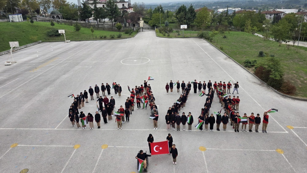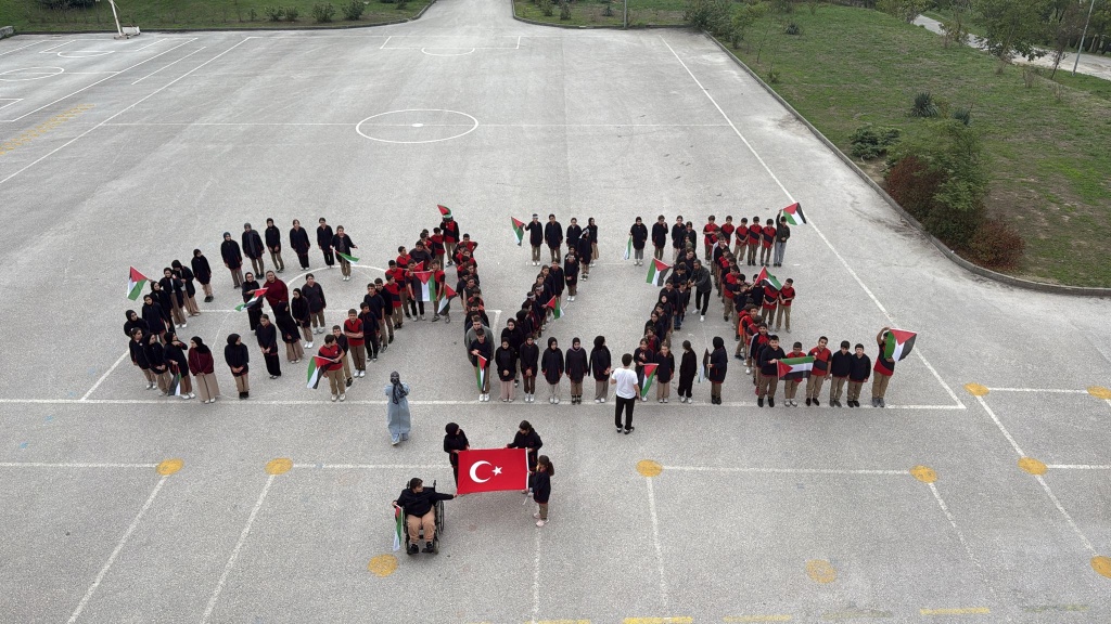 Filistin Farkındalık Etkinlikleri kapsamında okulumuz öğrencileri okul bahçesinde GAZZE kareografisi yaptı. Filistin ve Türk Bayraklarını sallayan öğrenciler ilahiler söylediler. 7 Ekim 2025 gün, gün boyunca farklı etkinliklerle bilinçlendirme ve bilgilendirme çalışmaları yapıldı.